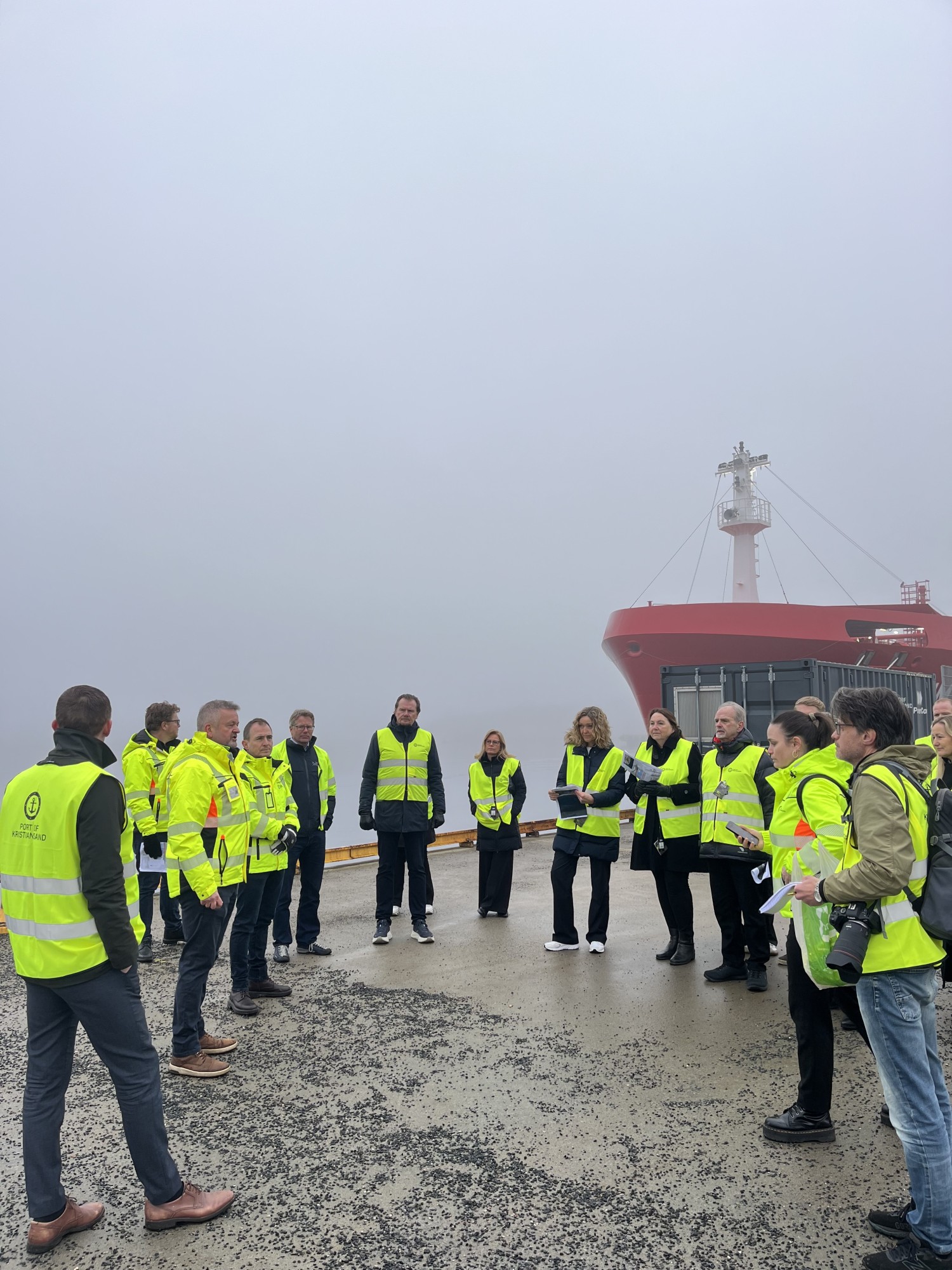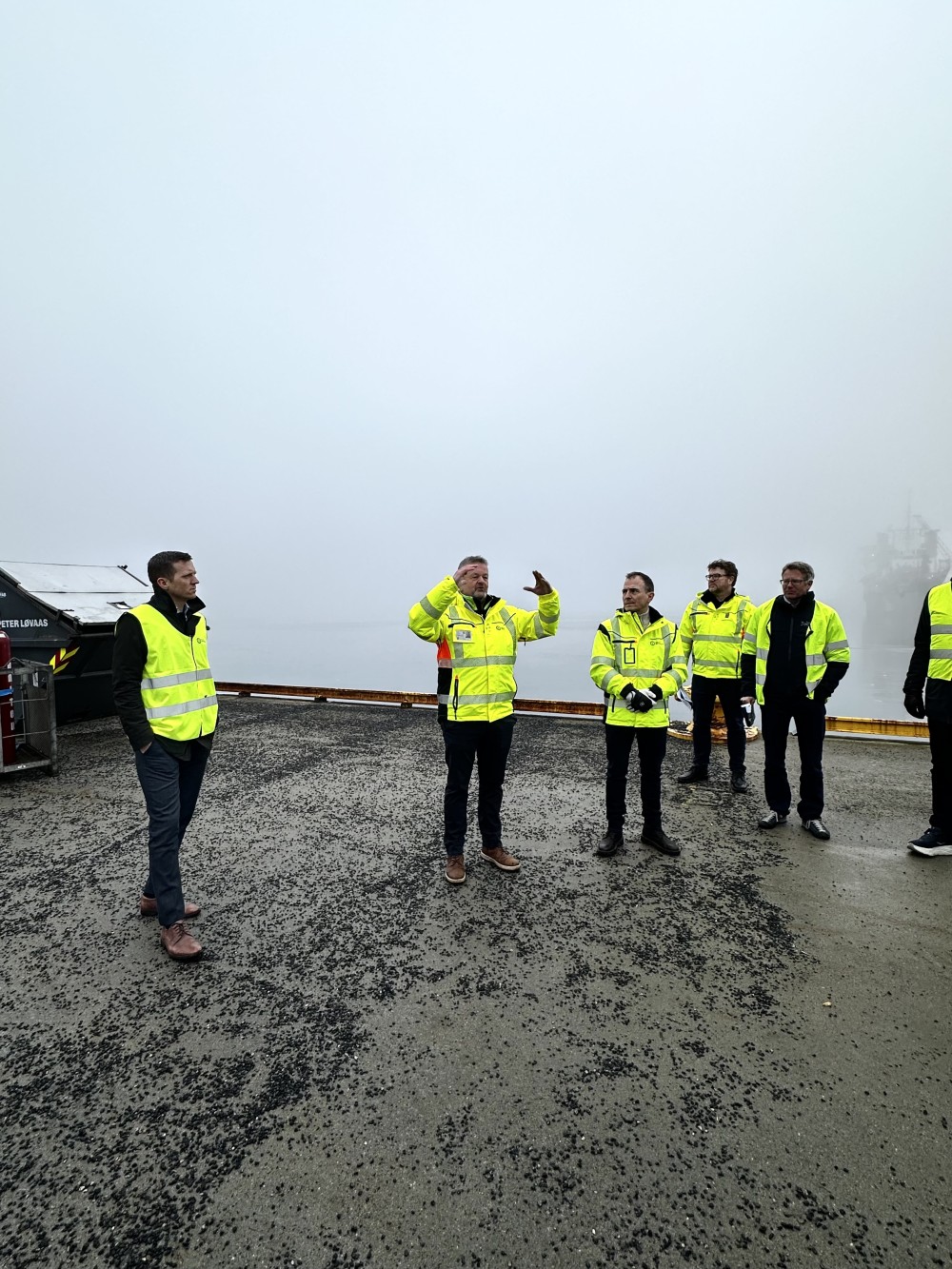 Befaringen ble ledet av teknisk direktør Harald J. Solvik i Kristiansand Havn. Han viste hvordan området på Kongsgård/Vige utvikles til en moderne containerterminal som skal sikre effektiv og fremtidsrettet logistikk for regionen.