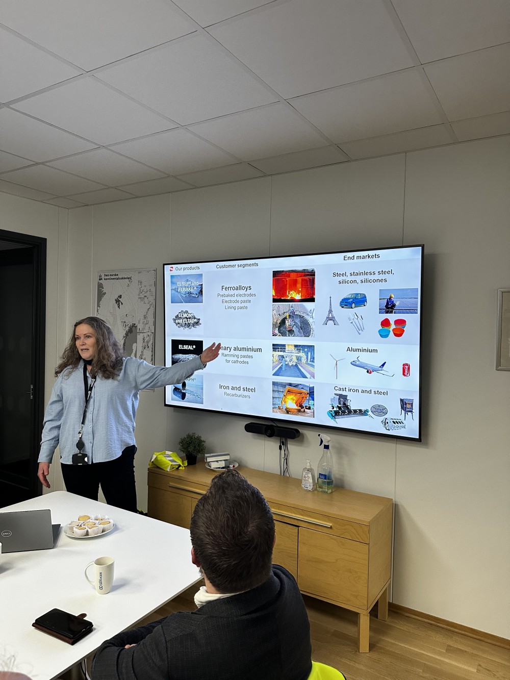 Anne Mette Grimestad fra Elkem fortalte at logistikk og transport er avgjørende for selskapets virksomhet. Elkem produserer avanserte materialer basert på blant annet silisium og karbon, som brukes i alt fra elektronikk og batterier til byggematerialer og solceller.